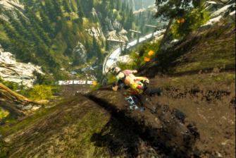 notre pilote multiplie les sauts à des hauteurs vertigineuses et descend des pentes